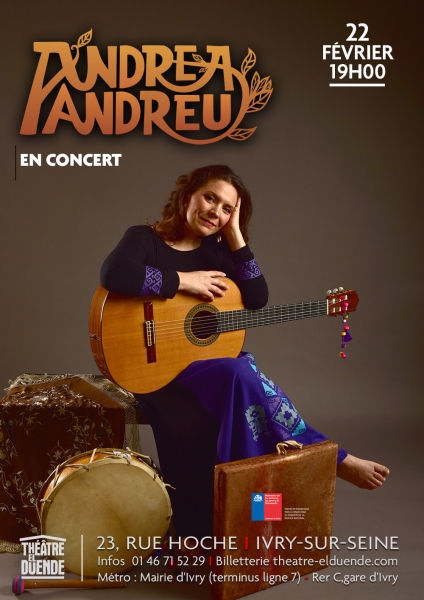 ANDREA ANDREU est une interprète reconnue de musique traditionnelle chilienne, auteure-compositrice de musique de racine populaire et chercheuse des savoirs liés à la guitarra traspuesta (guitare accordée selon différents tempéraments). Elle se distingue par sa capacité à créer des ponts entre les savoirs oraux et académiques, ainsi qu’entre le Chili, l’Espagne et d’autres pays. Elle a à son actif quatre albums et, tout au long de sa carrière, elle s’est produite au Chili, au Pérou, en Argentine, au Mexique et en Europe.