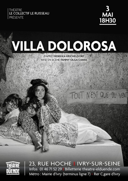 Réécriture contemporaine des Trois Sœurs de Anton Tchekhov, Villa Dolorosa met en scène une fratrie réunie pour l’anniversaire d’Irina, dans une maison de famille qui s’effrite. Cent vingt-cinq ans après Tchekhov, qu’est-ce qui a changé ? Et qu’est-ce qui demeure immuable ? La pièce interroge les trajectoires toutes tracées, le désamour du travail, la peur de ne pas s’accomplir, l’ennui, l’argent, l’amour impossible et le désir d’ailleurs. Elle donne corps à une jeunesse en déséquilibre, prise dans un monde saturé d’injonctions et d’informations, où l’on craint d’être passé à côté de sa propre vie. Comme chez Tchekhov, l’action se situe dans un milieu privilégié, révélant avec humour et cynisme les illusions sociales et les postures de réussite. Le ridicule n’est plus en marge, mais au cœur de ceux qui se croient éclairés. La mise en scène explore le trop-plein : trop d’alcool, trop de fêtes, trop de paroles. L’accumulation des objets et un travail sonore sur la banalité des échanges rendent visibles nos excès et nos silences. À travers trois anniversaires successifs, la pièce suit la dérive et l’isolement des personnages. Pourtant, au cœur de la fissure, demeure l’espoir fragile de construire, ensemble, quelque chose de plus grand que soi.