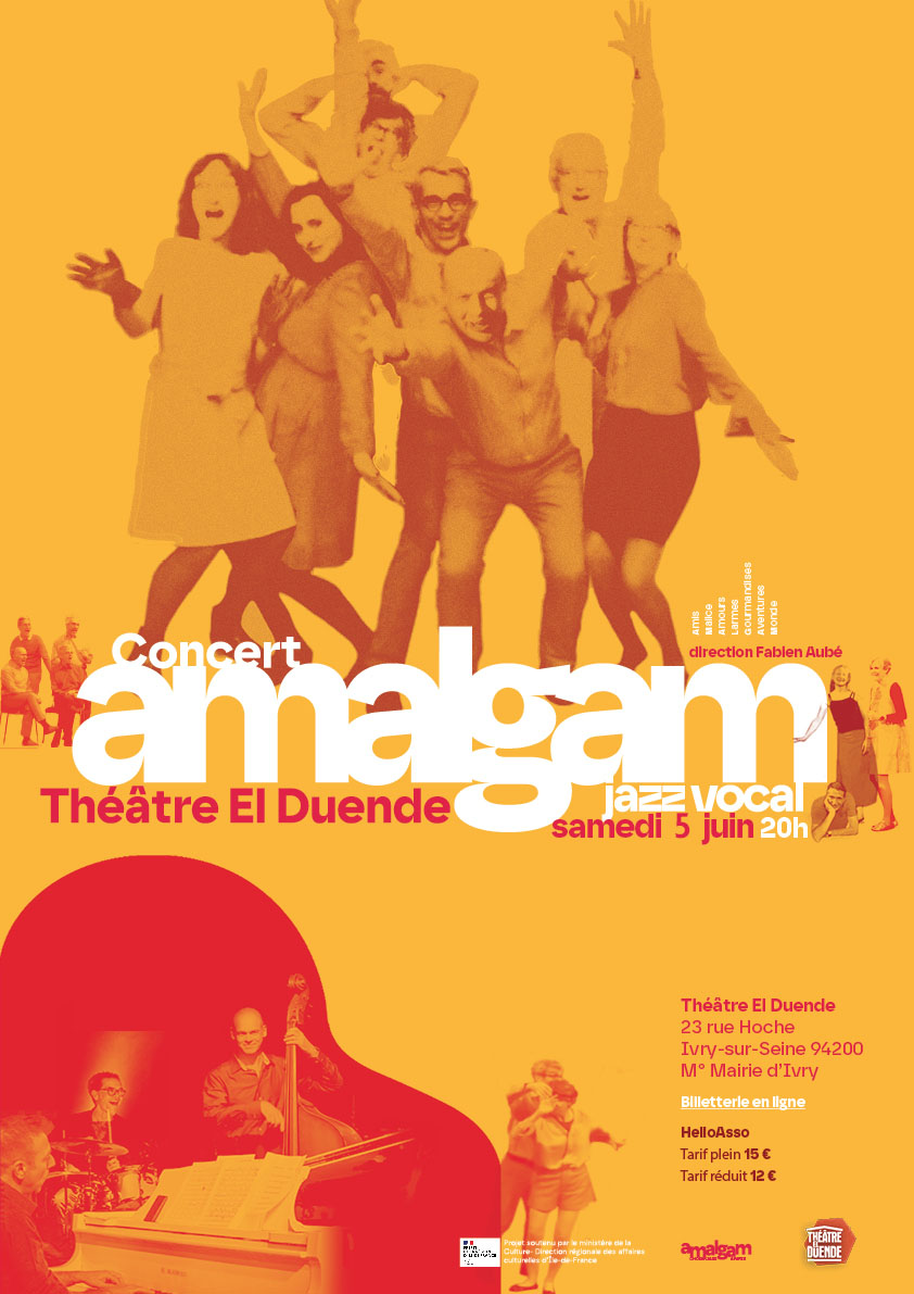 Amalgam est un groupe de jazz vocal créé en 1983. C’est un mélange de 25 passionné.e.s qui pratiquent une musique syncopée ternaire ou binaire, cocktail de jazz, rythmes brésiliens, influences afrocubaines. Et ça s’écrit sans e, contrairement à l’omelette qui elle aussi se mélange et s’accommode de divers ingrédients !